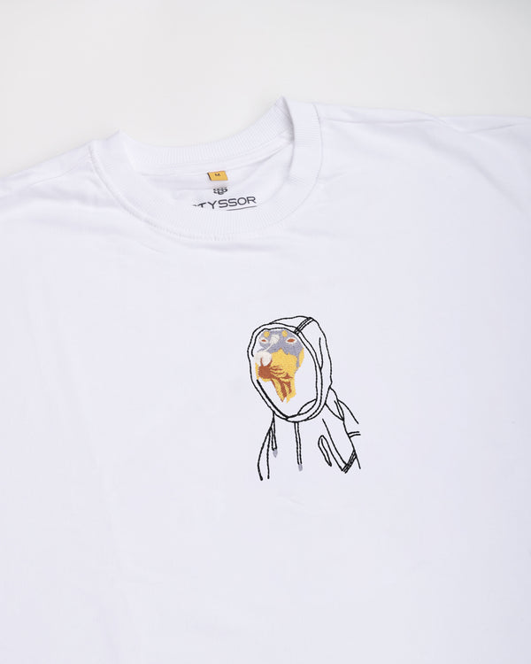 Dobermann Embroidery White Oversized T-Shirt